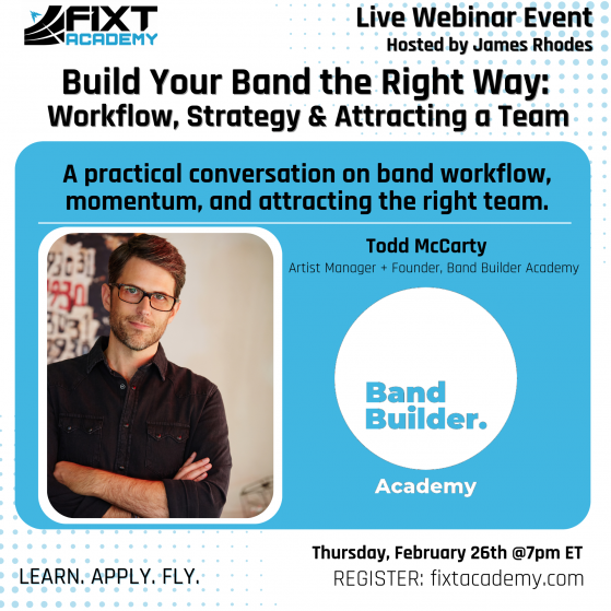FiXT Academy is a new suite of services led by FiXT Co-Founder and President, James Rhodes – designed to empower aspiring musicians and producers with the tools, knowledge, and inspiration they need to elevate their careers. FiXT Academy offers a comprehensive range of products, including engaging webinars, a membership community, dynamic mastermind groups, personalized coaching, and consultations tailored for artists and independent labels. With a mission to educate, develop and inspire, FiXT Academy serves as a one-stop resource for creatives aiming to refine their craft, build sustainable careers, and connect with like-minded professionals in the music industry.