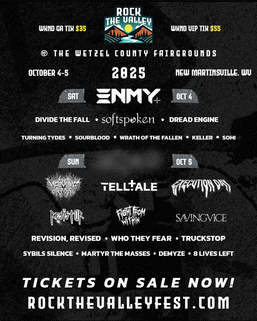 We’re excited to announce that Cincinnati-based rock sensation ENMY will performing in New Martinsville, WV at Rock The Valley Fest, on Saturday October 4th!